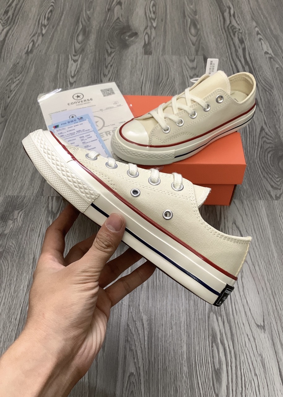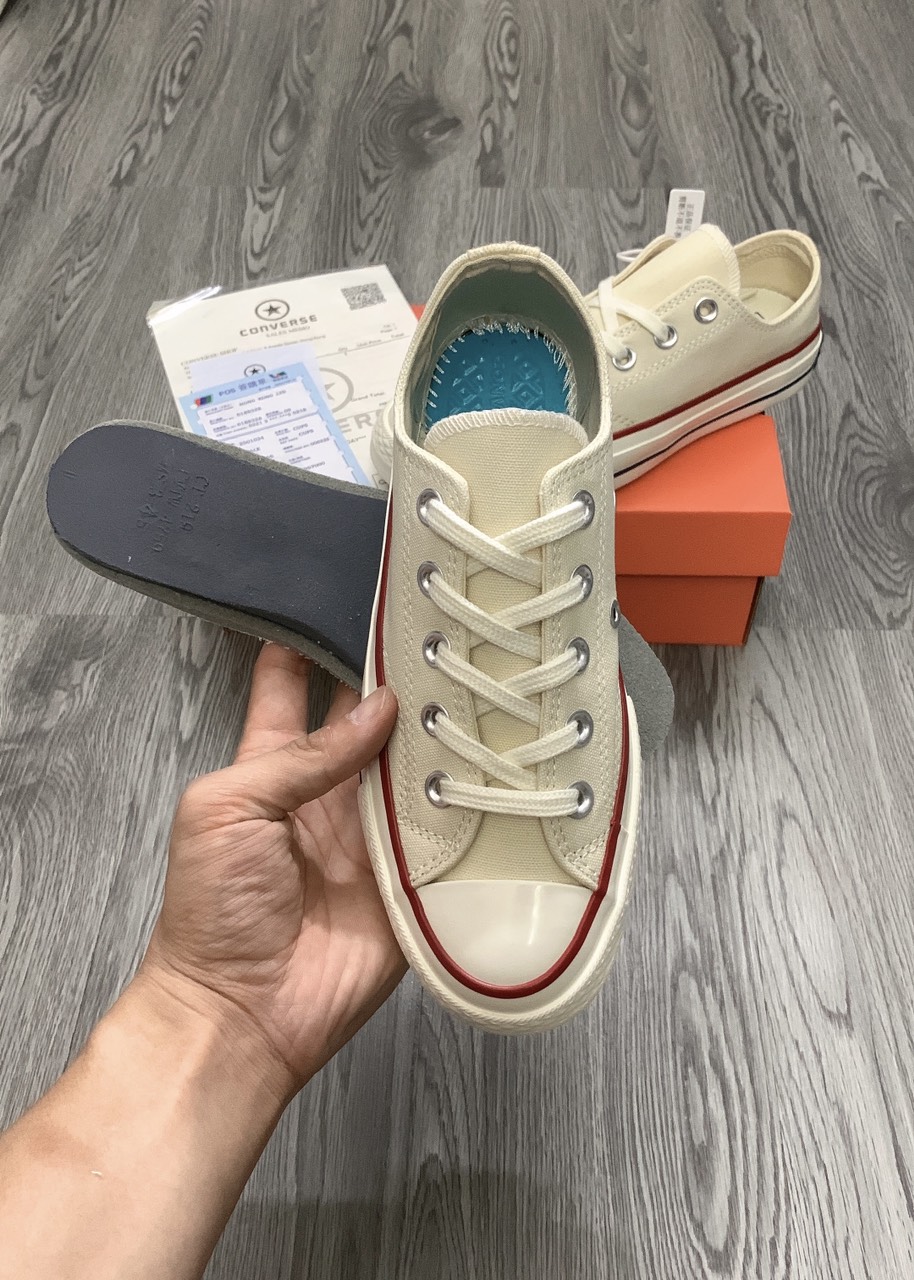 Và nếu bạn cũng là một người đam mê dòng sneaker dễ mang, dễ phố đồ thì không nên bỏ qua mẫu giày siêu phẩm này đâu nhé! Dưới đây là một số hình ảnh của đôi giày CONVERSE 1970s KEM CỔ THẤP, tại TyHi Sneaker (hàng chuẩn 1:1, bản xịn nhất thị trường).