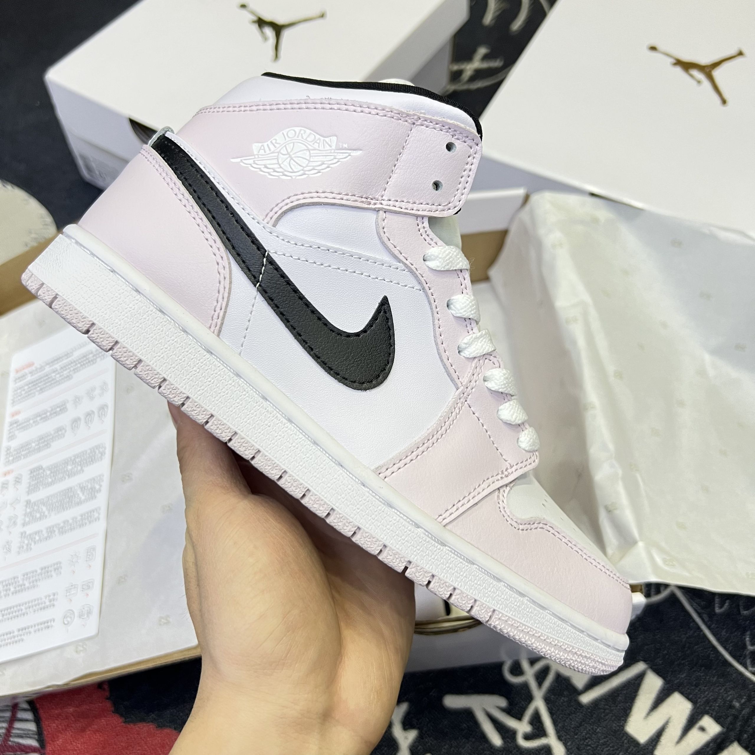 Và nếu bạn cũng là một người đam mê dòng sneaker dễ mang, dễ phố đồ thì không nên bỏ qua mẫu giày siêu phẩm này đâu nhé! Dưới đây là một số hình ảnh của đôi Giày Jordan 1 Mid Hồng Vệt Đen Nữ Like Auth tại TyHi Sneaker (hàng chuẩn likeauth bản xịn nhất thị trường).
