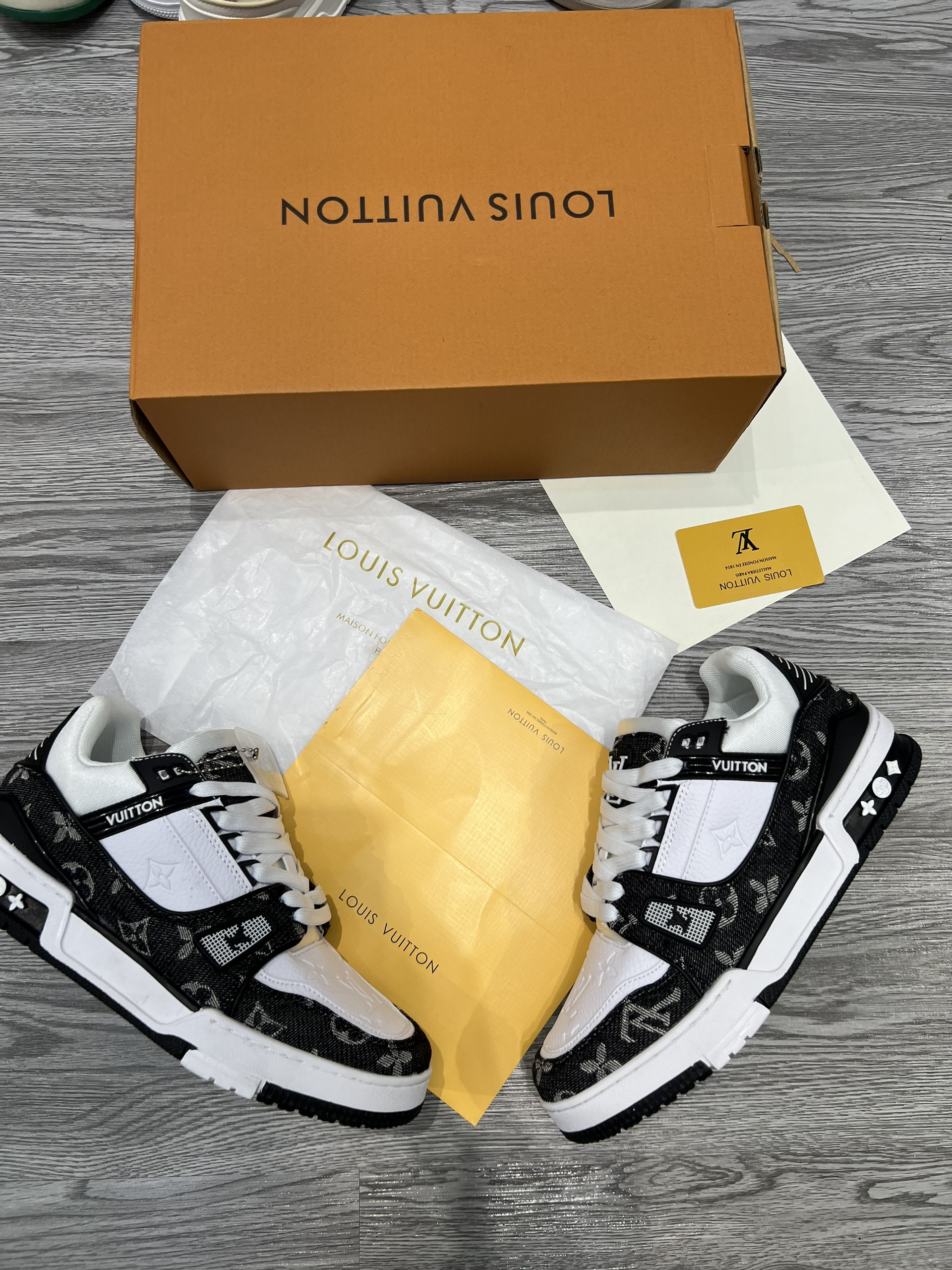 Giày LV Trainer Monogram Denim Đen Trắng Siêu Cấp Like Auth