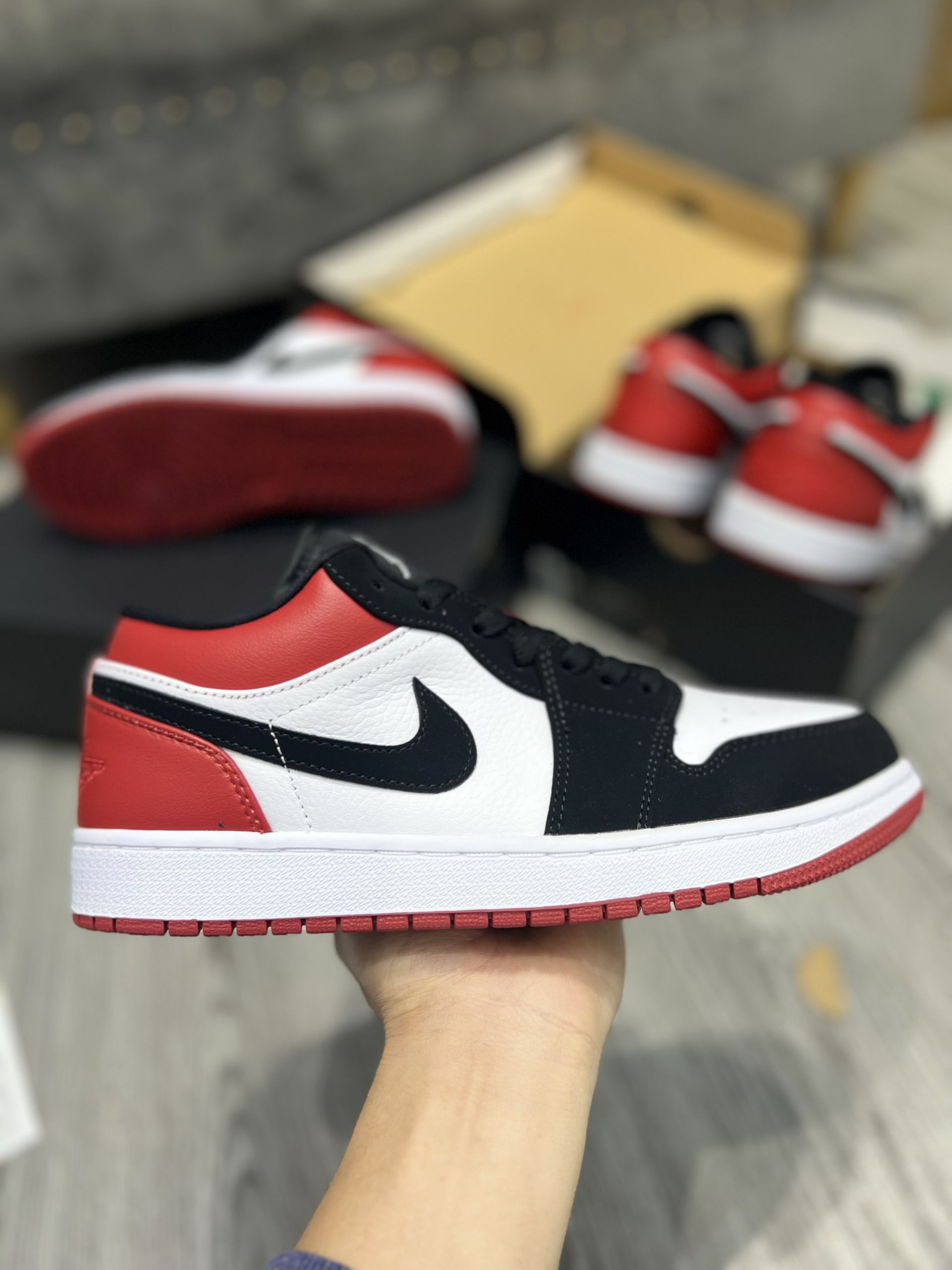 Và nếu bạn cũng là một người đam mê dòng sneaker dễ mang, dễ phố đồ thì không nên bỏ qua mẫu giày siêu phẩm này đâu nhé! Dưới đây là một số hình ảnh của đôi Giày Nike Air Jordan 1 Low ‘Black Toe’ Like Auth tại TyHi Sneaker (hàng chuẩn likeauth, bản xịn nhất thị trường).