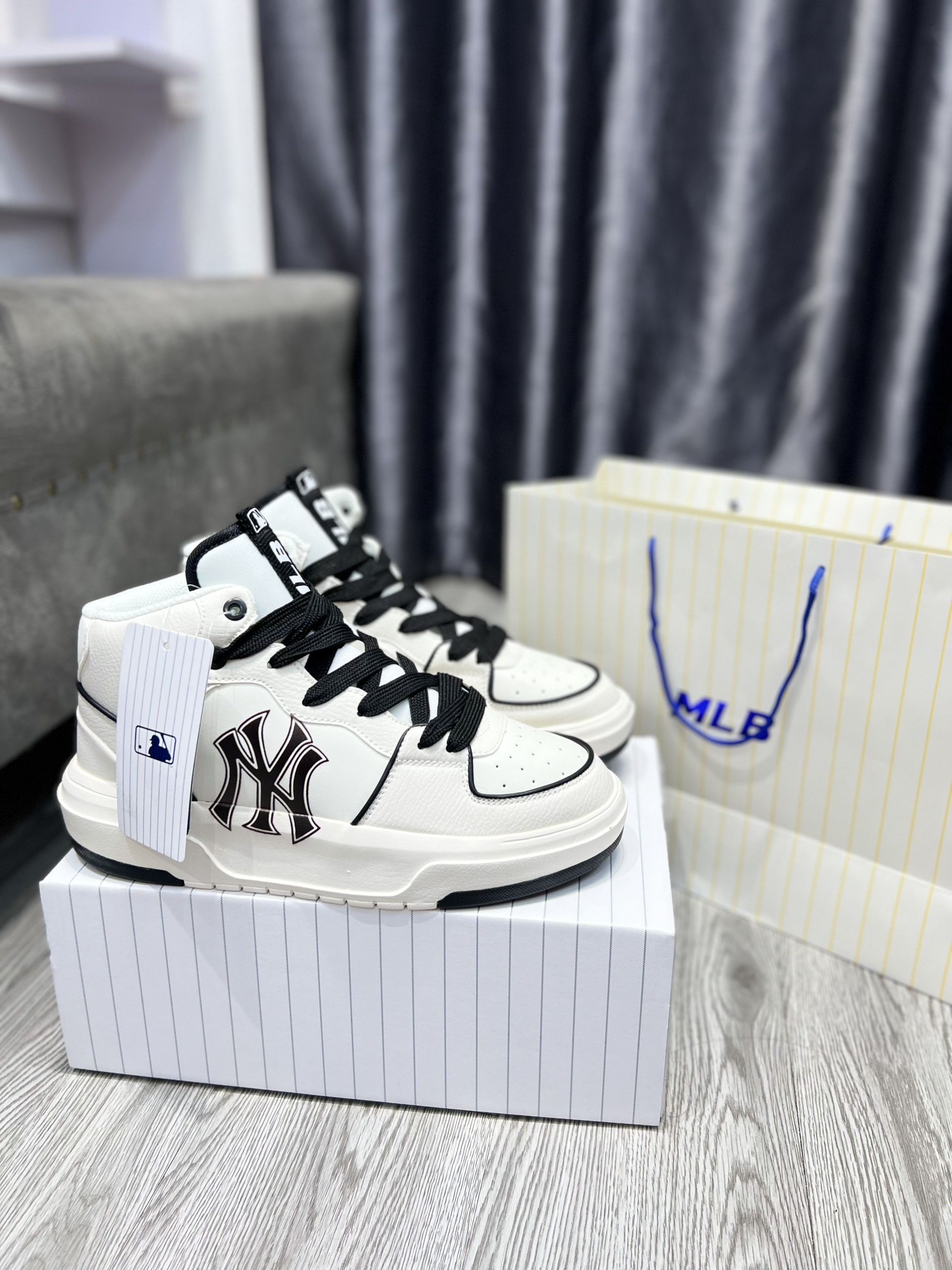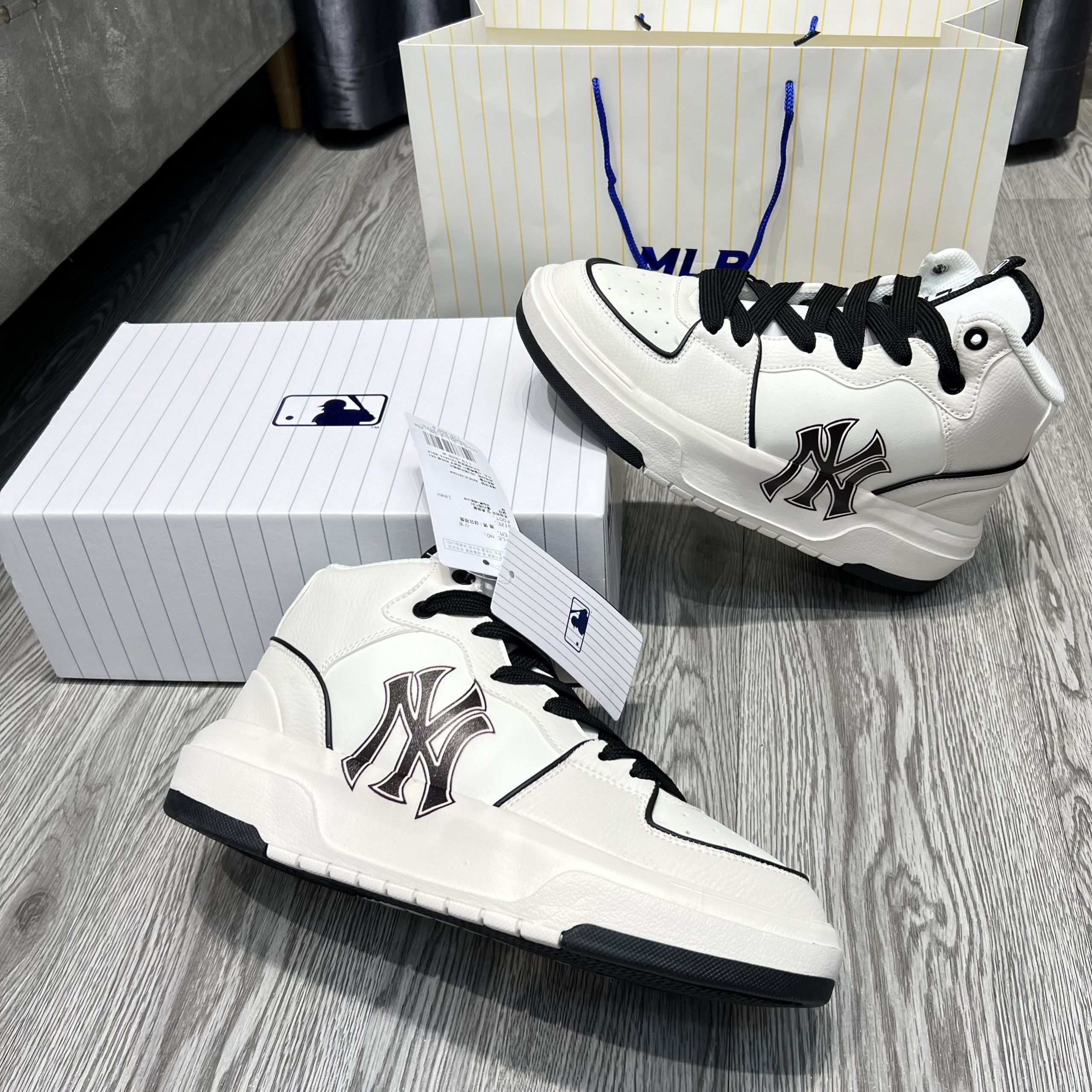 Và nếu bạn cũng là một người đam mê dòng sneaker dễ mang, dễ phố đồ thì không nên bỏ qua mẫu giày siêu phẩm này đâu nhé! Dưới đây là một số hình ảnh của đôi Giày MLB Chunky Liner High New York Yankees ‘White Black’ tại TyHi Sneaker (hàng chuẩn Siêu cấp bản xịn nhất thị trường).